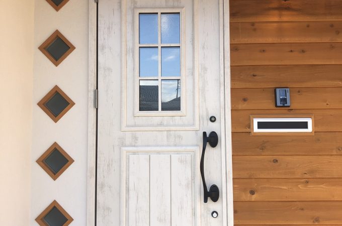 オーナー様がデザインした、玄関ドア横の小さな明り取りの窓がアクセントとなってとってもかわいい玄関になりました。