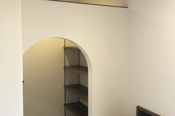 玄関ホールニッチカウンター 壁をRに仕上げました